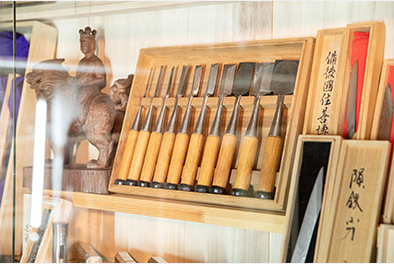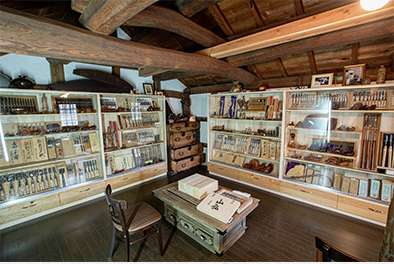 かじ兵衛本店には、当社会長が長きにわたり集めた、千代鶴の鉋、左久作の鑿、正行の玄翁等、滅多にお目にかかれない